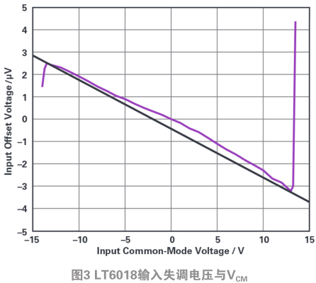 下一种误差源是。这体现在共模抑制比指标参数上,其中失调电压会随着相对于两个供电轨的输入电平而变化(所谓的共模电压, VCM
