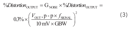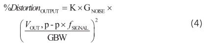 图6显示了输入级的失真与振幅。在应用电路输出时将显示这些信息(乘以噪声增益)。输出失真可以继续增加,但不能减少。